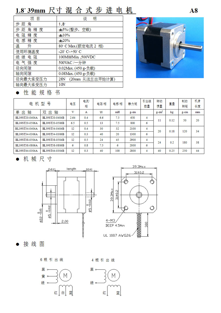 | 1.8°39mm兩相混合式步進電機 |
